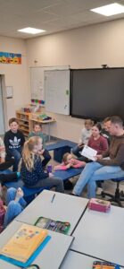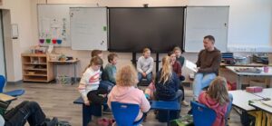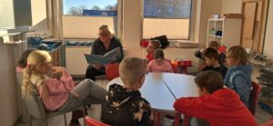 Heute wurde uns gemeinsam in den Klassen 3 und 4 und 1 und 2 Geschichten aus Büchern vorgelesen.